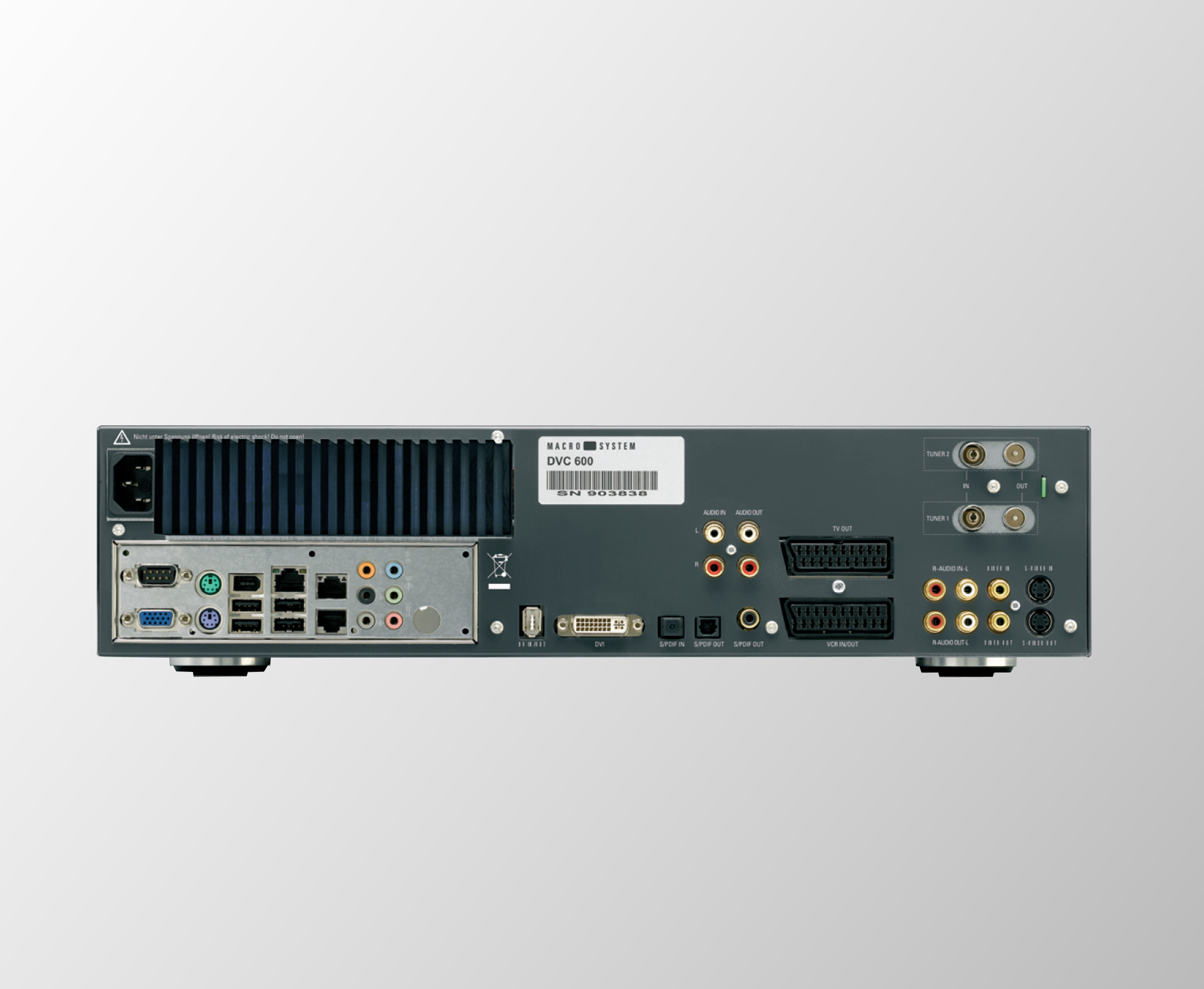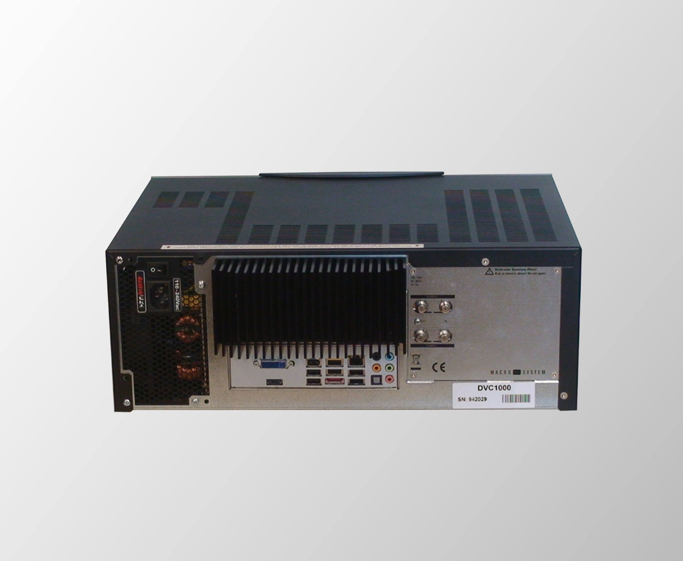 Das Gerät ist mit der DVC-typischen, edlen Glasfront ausgestattet. Auf Grund der geringen Bauhöhe und der einfachen Verkabelung (Netzteil, Antennenkabel und HDMI) kann der Streamcorder auch unauffällig installiert werden.